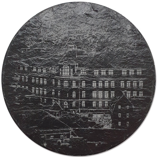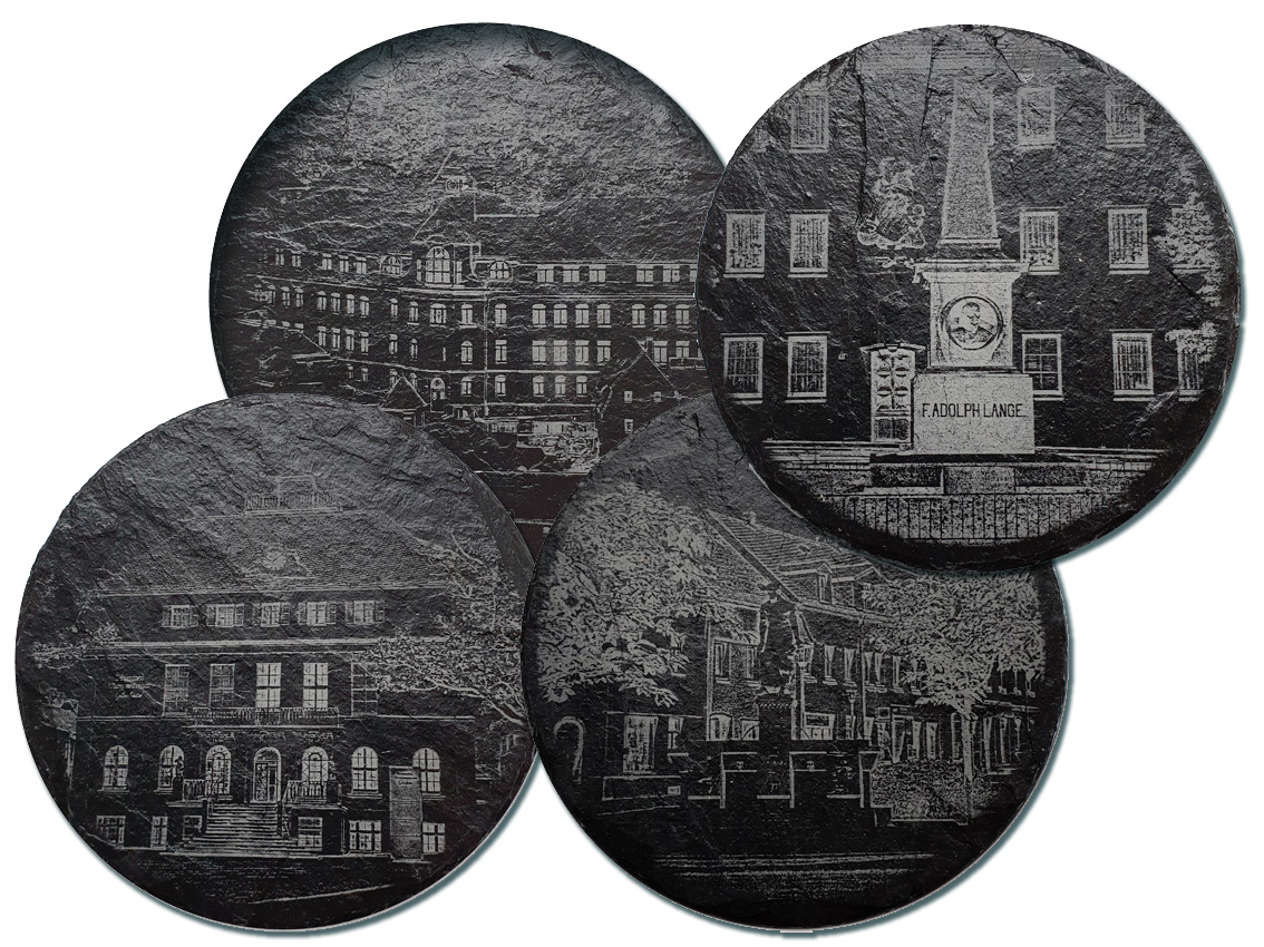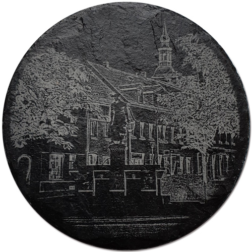 Schiefer-Untersetzer-Set rund mit Glashütter Motiven (4 Stk.)